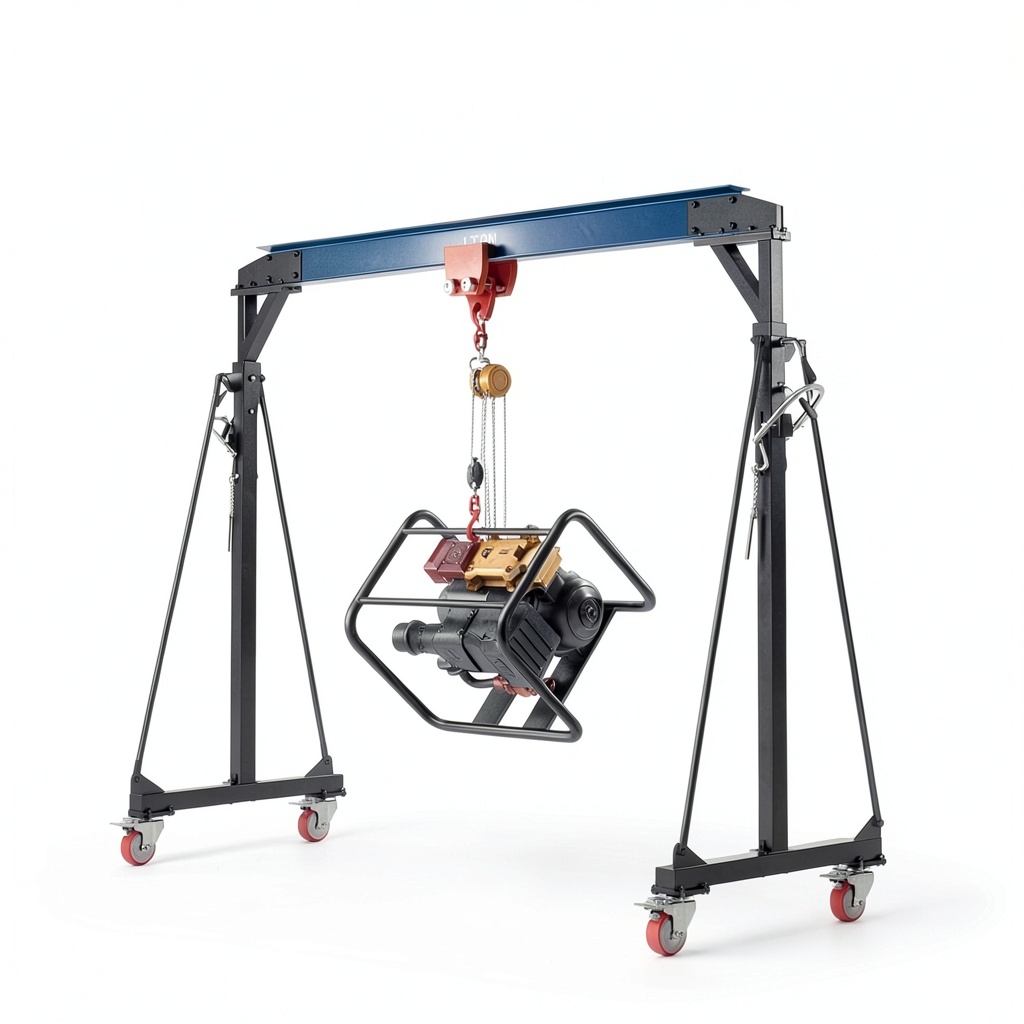 This gantry crane is ideal for environments such as workshops, garages, mechanical rooms, factories, car repair shops, and logistic yards, where space may be limited. It excels in tasks like model replacements, machine maintenance, and general lifting operations in confined areas lacking overhead crane systems. Target users include industrial professionals, mechanics, and DIY enthusiasts who require a reliable, portable solution for moving heavy loads safely and efficiently.